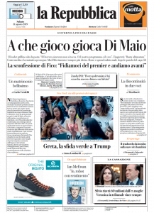 Governo, il Conte bis in dirittura d’arrivo. Ma sulla squadra è ancora scontro. M5S-Pd Braccio di ferro su Economia e Infrastrutture. Oggi il voto dei grillini sulla piattaforma Rousseau. La svolta è arrivata con il faccia a faccia tra il segretario Pd e il leader grillino. Sulla Stampa a pagina 2.