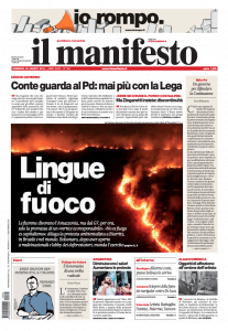 “Il cerino di Bolsonaro brucia le foreste e la verità”. Parla Yurij Castelfranchi, prof dell’Università di Minas Gerais: “Il presidente brasiliano vuole ottenere il Far West delle regole per lo sfruttamento”. È un classico del governo Bolsonaro, che usa le stesse tattiche della post-verità di Trump, servendosi di una m i t ragliatrice di calunnie. (Fatto p.16).
