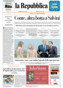 Una rottura annunciata. Stefano Folli su Repubblica (p.33). Se è vero che il M5S pone come pregiudiziale l’immediato taglio dei parlamentari e Conte premier, si capisce che il movimento ha fatto la sua scelta. Di Maio tenterà il salto all’indietro di un abbraccio con il suo ex amico e recente torturatore, Salvini.