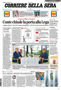 Conte. «Non torno con Matteo, è sleale». Il premier verso le dimissioni con due alternative: il bis o la Ue. Le ipotesi: potrebbe lasciare martedì oppure due giorni dopo per permettere il via libera al taglio dei parlamentari (Messaggero p.3). Atteso lo show down di Conte al Senato. Elezioni più lontane. Palazzo Chigi fa sapere che «indietro non si torna», ma le incognite sono molte (Sole p.5). Conte non cerca mediazioni, la rottura ormai è insanabile (ma non pensa di candidarsi). L’idea che la «pace» rinvierebbe di pochi mesi la richiesta di urne di Salvini. Il retroscena di Massimo Franco sul Corriere (p.5). More