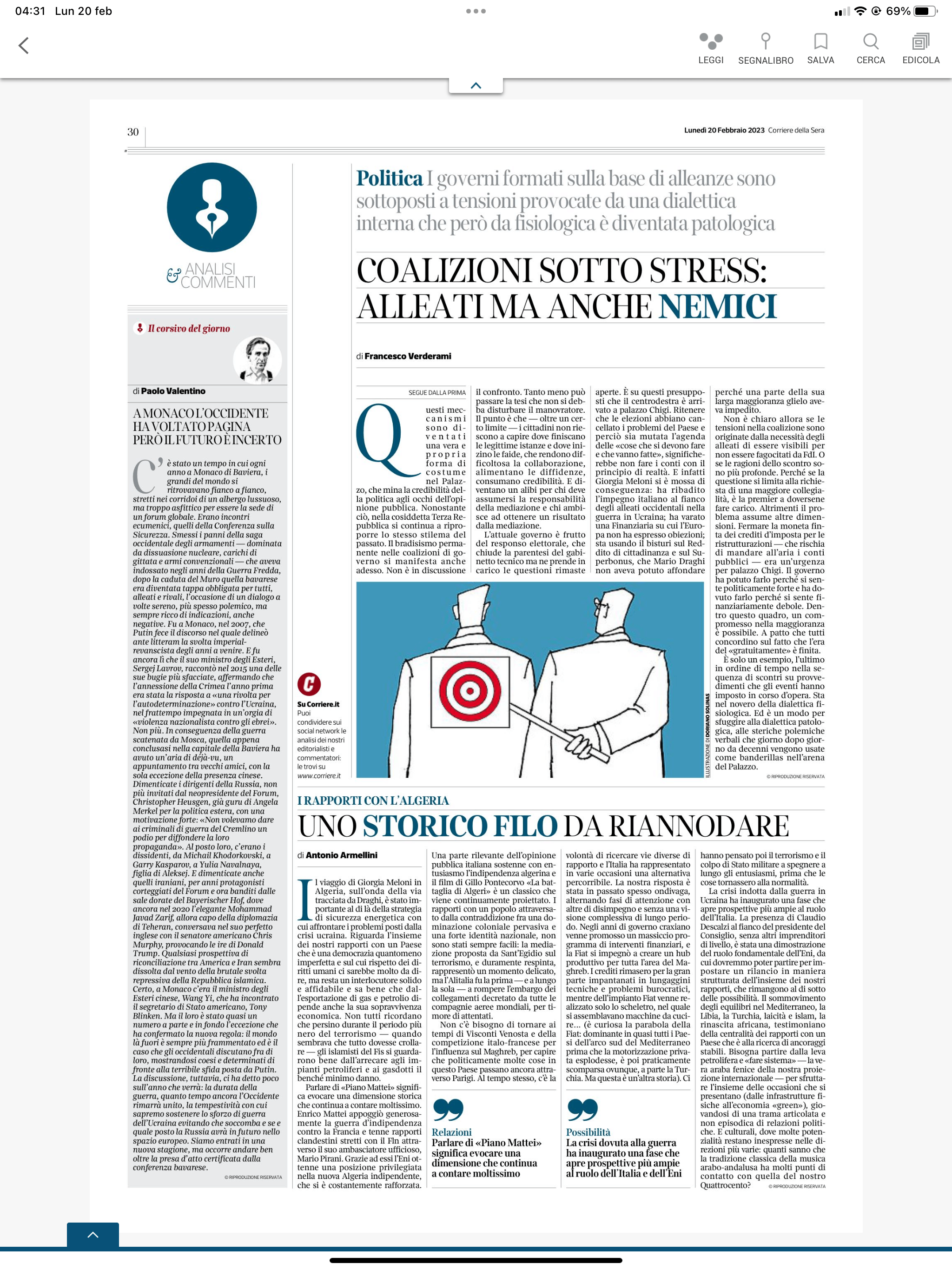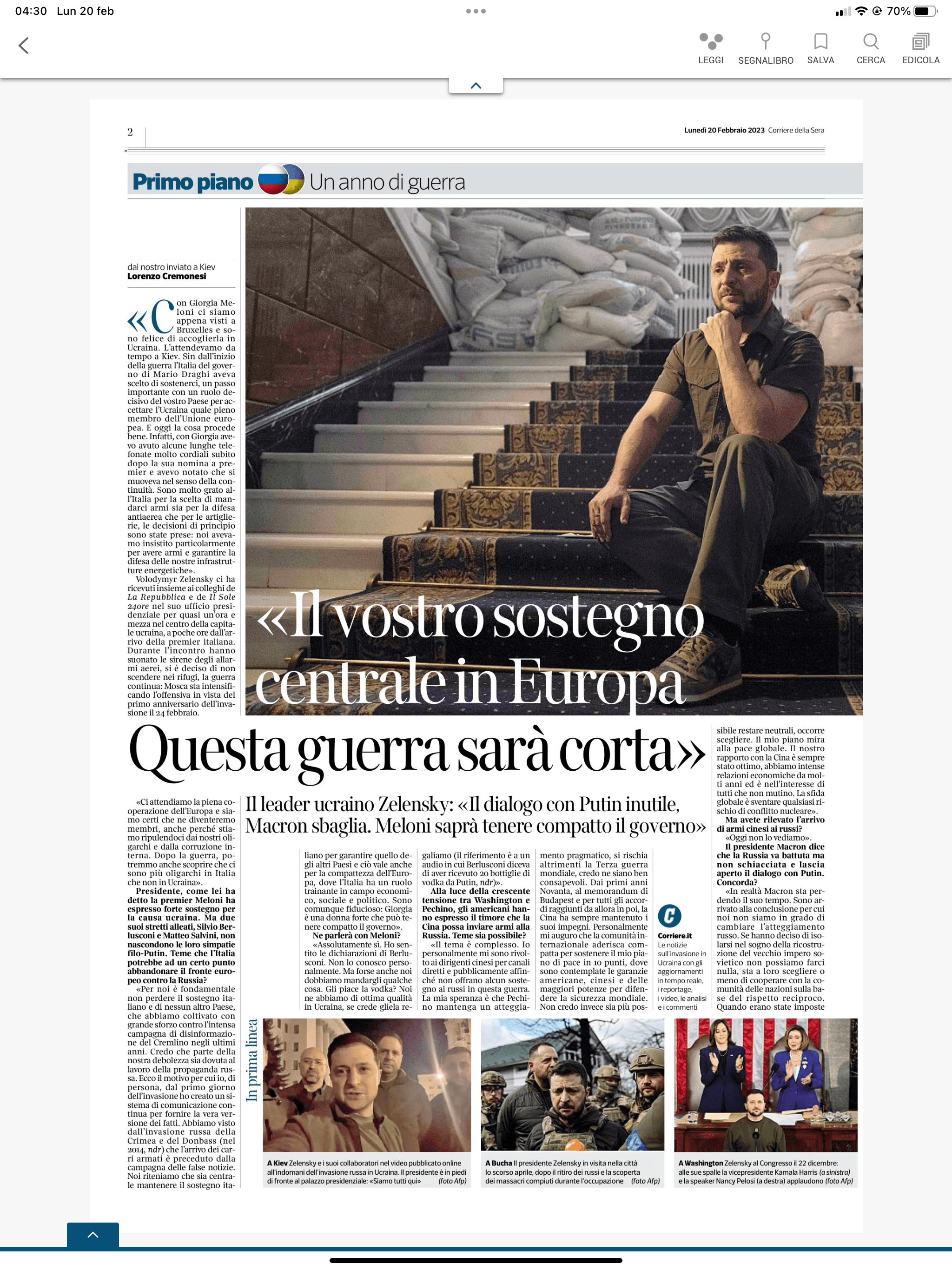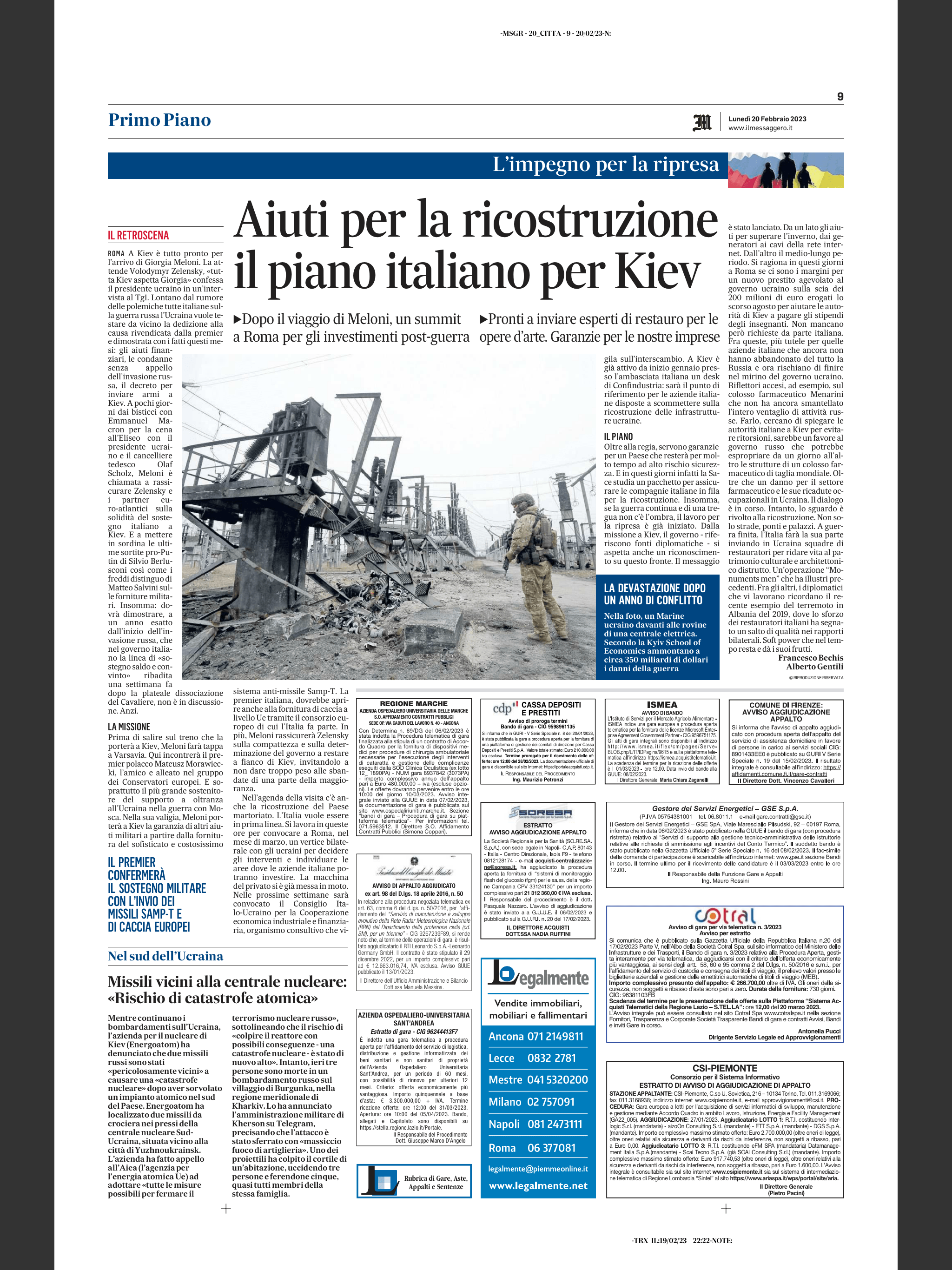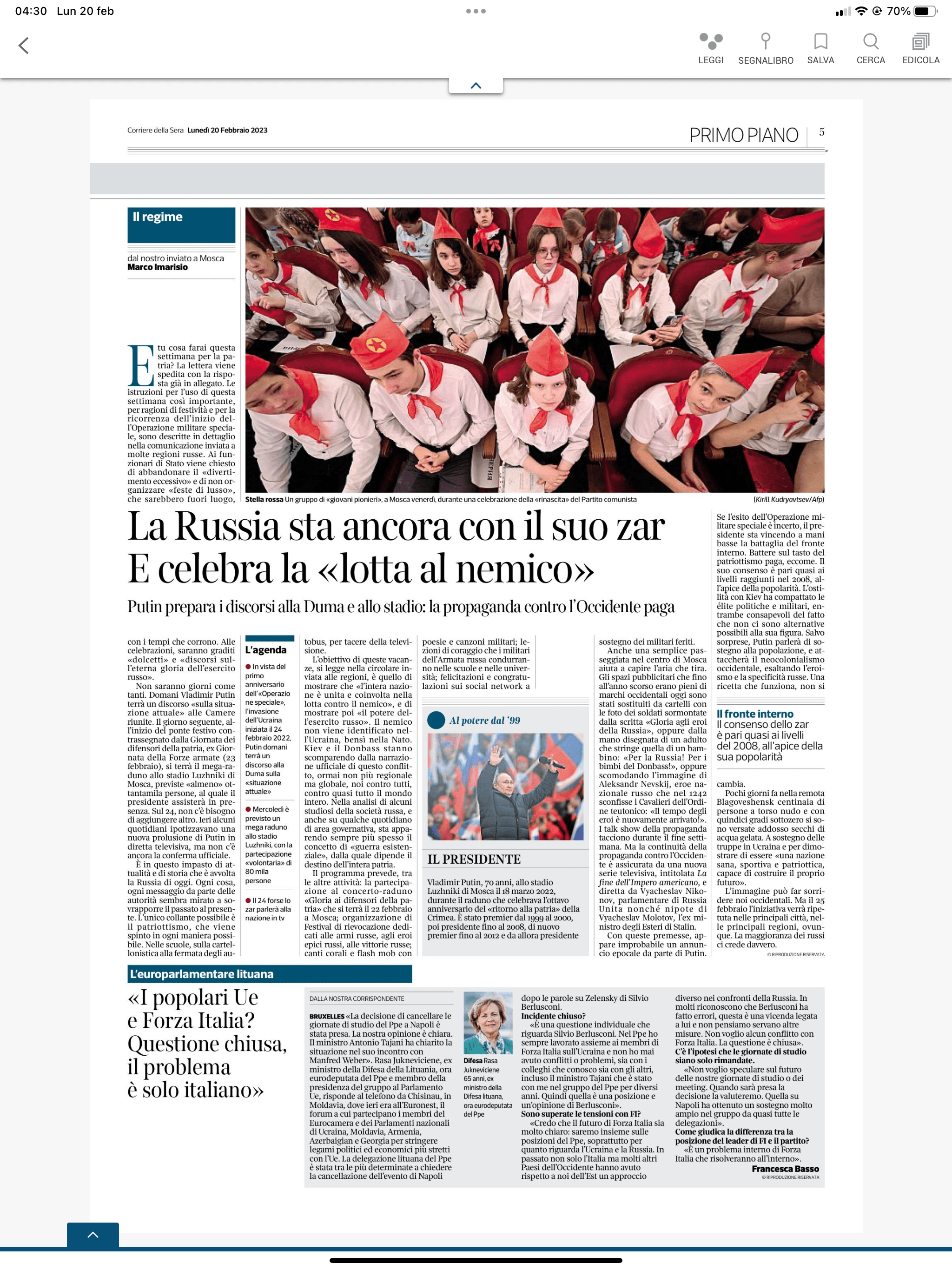 Ucraina. Il segretario generale della Nato Stoltenberg sostiene che una sconfitta nella regione di Donetsk non si tradurrebbe in una svolta nel conflitto anche se Mosca non va sottovalutata e si dice convinto, appunto, che Bakhmuth possa cadere nei prossimi giorni. Stoltenberg ha stimato che in questo anno di guerra gli alleati hanno garantito all’ucraina aiuti per 50 miliardi di euro di cui 65 di aiuti militari. La Nato dovrebbe approvare a breve le nuove linee guida della gestione delle scorte di munizioni fra i paesi membri. L’alleanza ha finora formato 11.000 soldati ucraini in particolare nell’uso di carri armati. La cifra salirà a 30.000 entro la fine dell’anno.