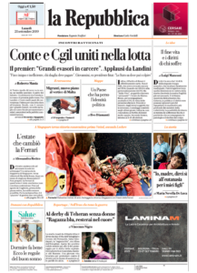 Compagno Conte. Conte e Cgil uniti nella lotta. L’abbraccio della Cgil al “quasi compagno” Conte. Non succedeva dal 1996 che il premier parlasse alla platea del sindacato. Con Landini è stata un susseguirsi di d’accordissimo. Roberto Mania su Repubblica.